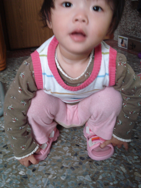 2009.2.12~小苡歆一直要穿上新涼鞋〈想要自己穿喔,看的媽咪一直笑~〉